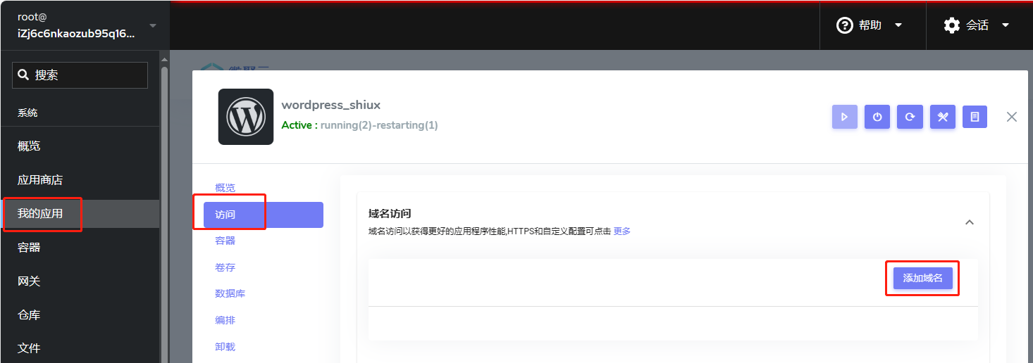 如果您是普通用户,通过应用管理界面修改域名是一项比较简单的操作: