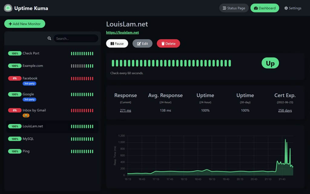 我们推荐用户通过 Websoft9 应用商店,安装 Uptime Kuma,然后将需监测的应用接入到此工具中,并设置告警策略。