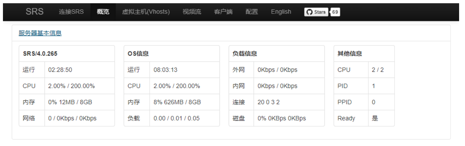 点击 "SRS控制台" 链接,进入控制台进行监控以及各种设置