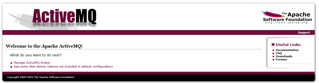 Use a local computer browser to access ActiveMQ, where you can see the Welcome page