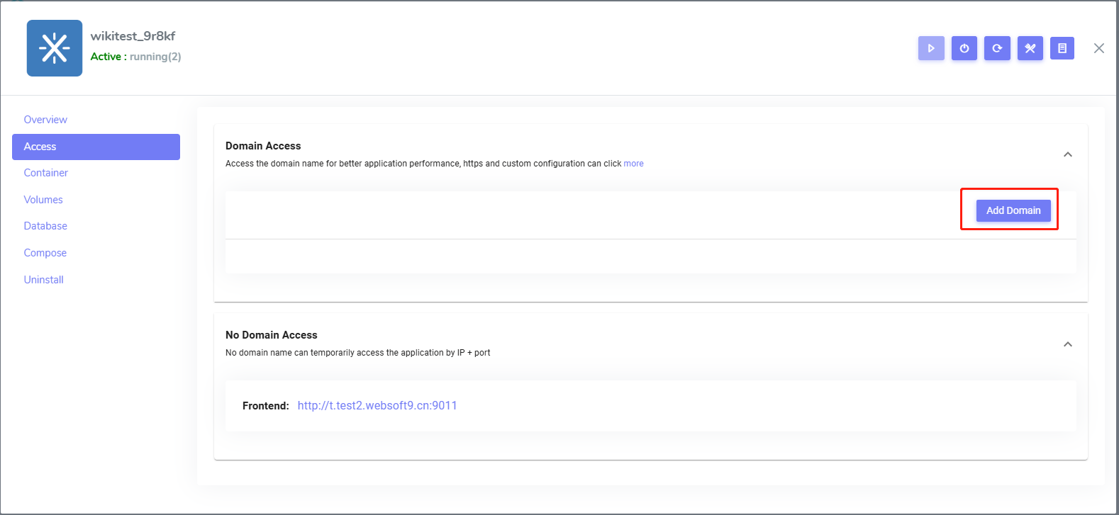 Login to Websoft9 Console and open the Access tab of application management interface from My Apps