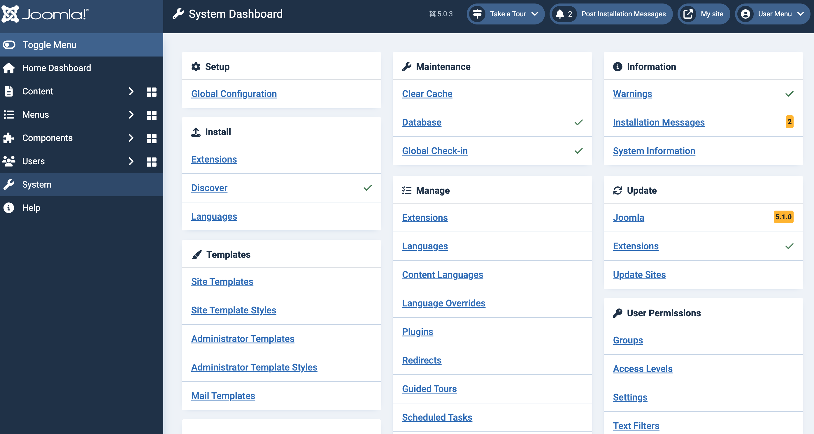 In the Joomla backend, navigate to System > Install > extensions to access the extension management interface